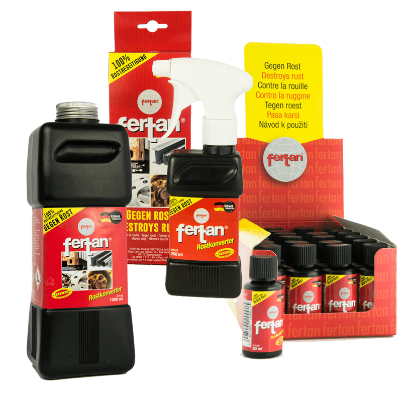 Основана през 1979 година, Fertan GmbH произвежда и продава продукти за защита от ръжда и корозия, покрития и вакси. Ние работим в тясно сътрудничество с нашите клиенти по всички проблеми и проекти, свързани с корозията. Предлагаме индивидуални съвети и решения за нужди, вариращи от реставрацията на класически автомобили до специфични индустриални казуси.